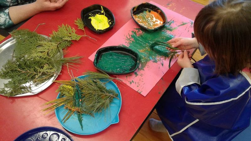 Painting with natural "brushes" at the Minden centre today. We are brightening up the centre with some colourful artwork to celebrate the arrival of spring!