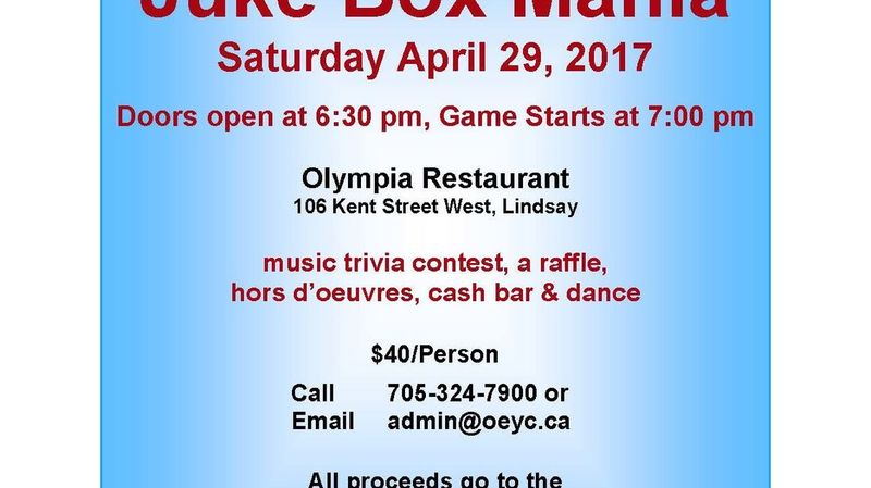 Our one fundraising event for 2017... Juke Box Mania is \happening on Saturday, April 29. Call the OEYC at 705-324-7900 to reserve your spot.