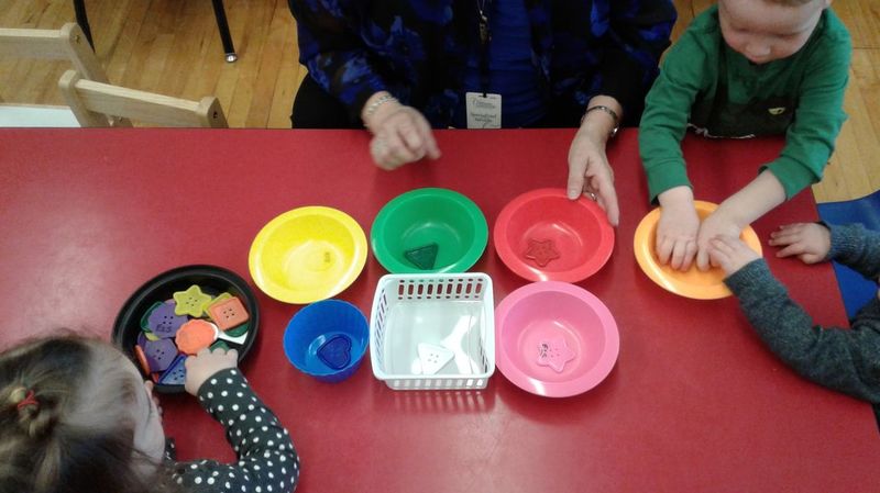 Sorting buttons by colour at our Toddler Tunes and Tales Morning in Minden.