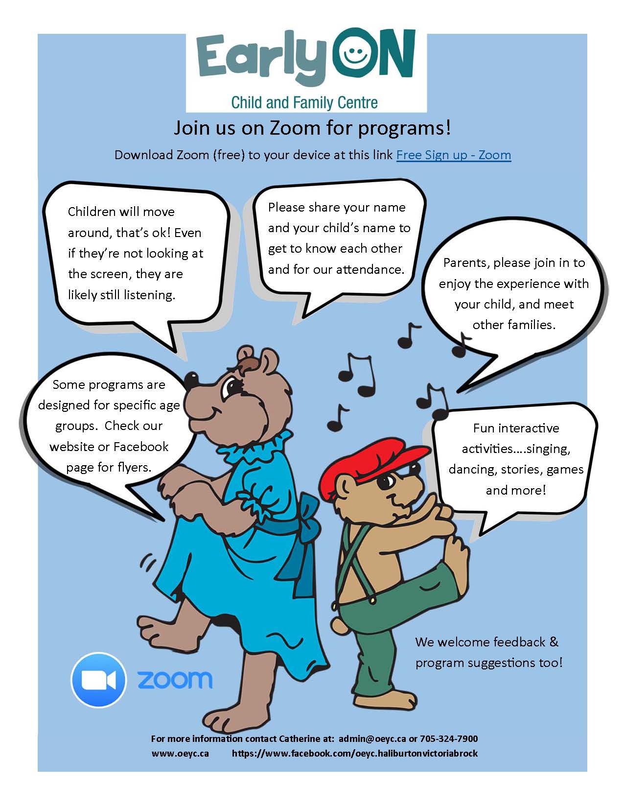 Please register for the following programs this month by emailing: registration@oeyc.ca